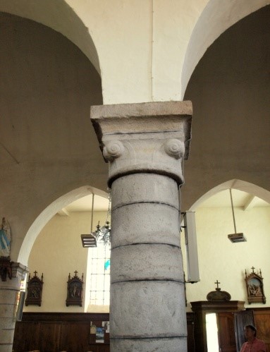 Si on observe bien, on peut également remarquer un mâchicoulis sur le mur-ouest du collatéral. Ce mâchicoulis protégeait la porte d’entrée seigneuriale (aujourd’hui bouchée), de l’église.