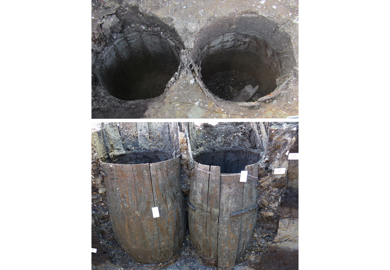 Au nord-ouest, les archéologues ont mis au jour deux tonneaux en bois reconvertis en réservoir pour les latrines (toilettes sommaires). Elles étaient installées à l’arrière d’une maison qui a été construite après la destruction des remparts au début du 16iéme siècle.