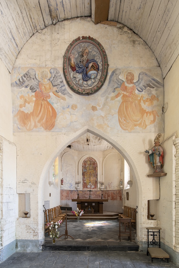 Les peintures murales sur l’arc triomphal, caractérisées par des anges, ainsi que celles qui ornent le chœur représentant le tétramorphe sont réalisées par François Mes. Les maçonneries de la façade occidentale comportent un grand nombre de graffitis provenant des pèlerins et notamment la représentation de trois bateaux, dont l’un est daté de 1749.