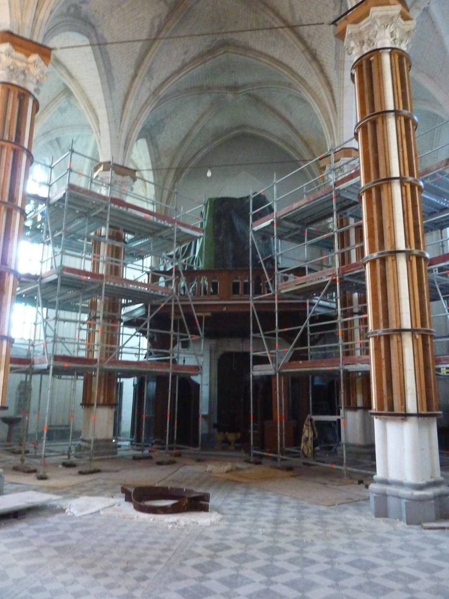 La première concerne les modifications du chœur avec la suppression de l’ancienne salle paroissiale, la démolition du déambulatoire, la suppression de deux chapelles latérales et la restitution des maçonneries du chevet. Puis, les phases suivantes se concentrent sur la stabilité de la tour et la restauration de la flèche puis le clos et le couvert de la nef.